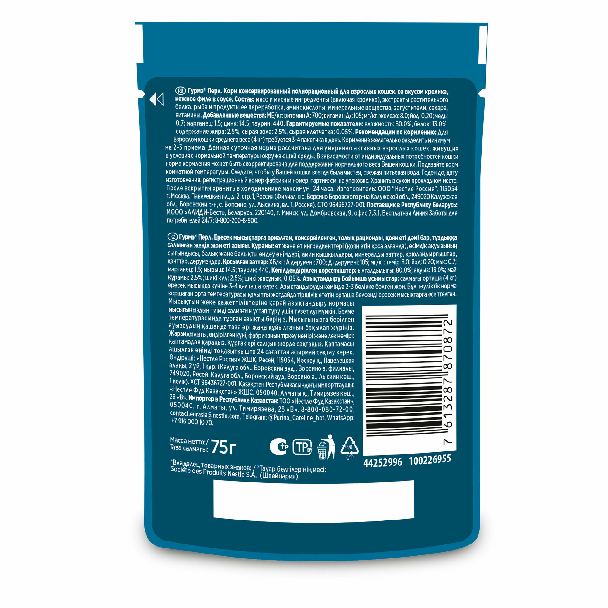 Купить Гурмэ Перл Нежное филе 75 г влажный корм для кошек, со вкусом кролика в соусе х26 штук