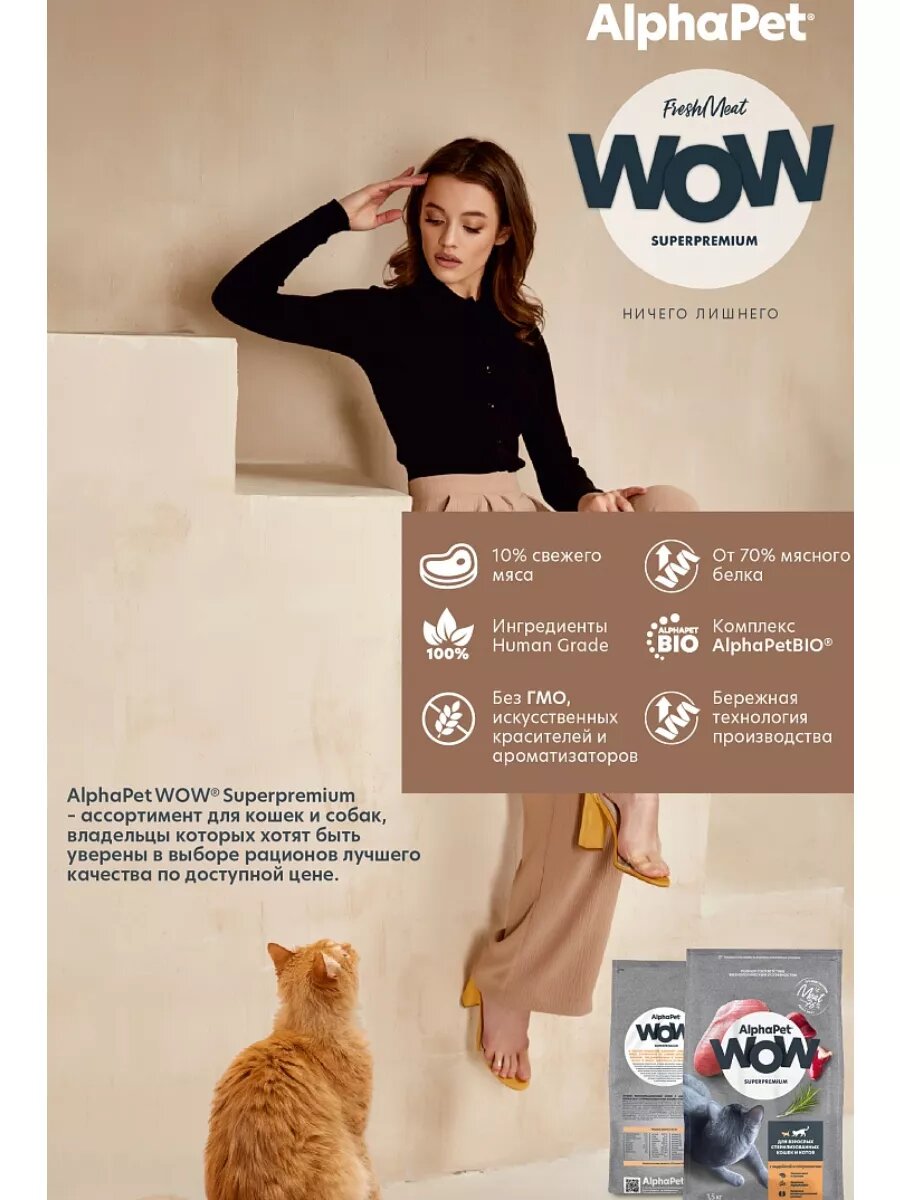 Корм AlphaPet WOW Superpremium для стерилизованных кошек и котов, c индейкой и потрошками, 1.5 кг