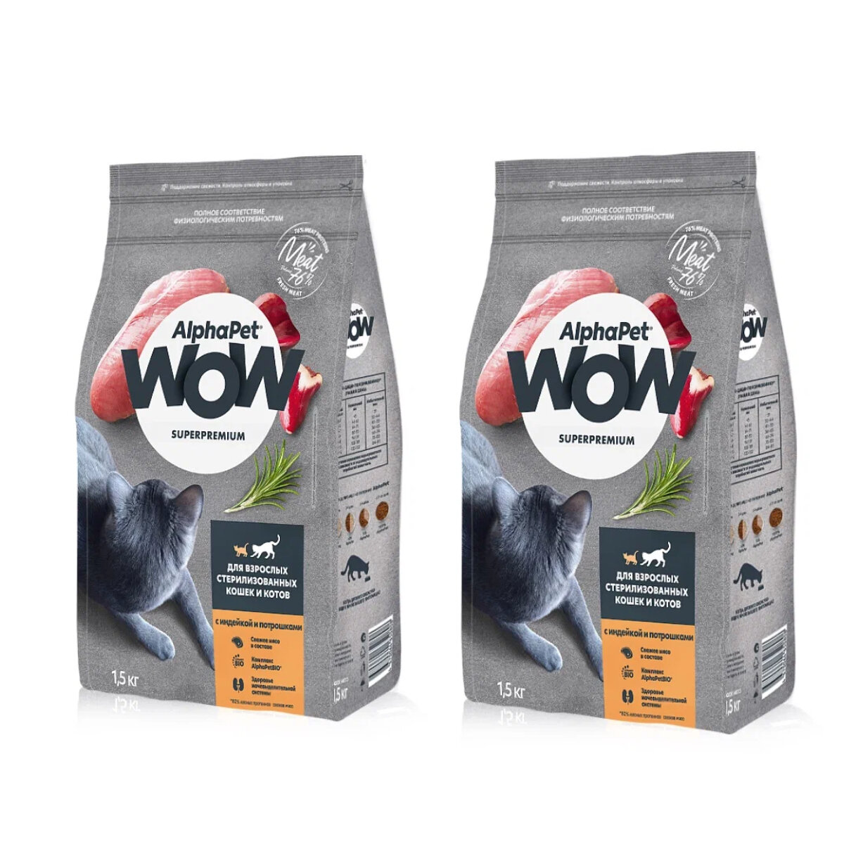 ALPHAPET WOW SUPERPREMIUM 1,5 кг сухой корм для взрослых стерилизованных кошек и котов с индейкой и , 82761 (2 шт)