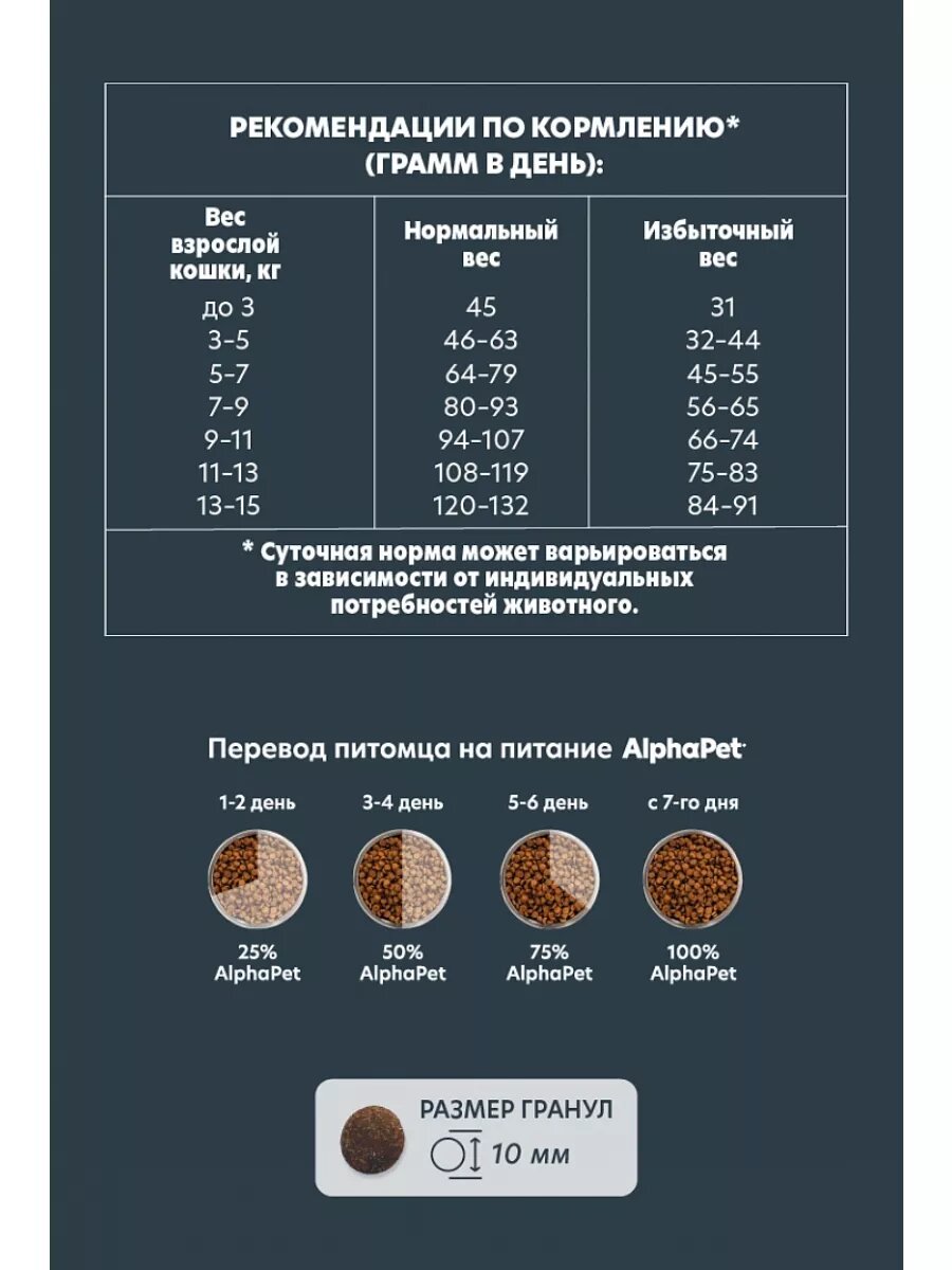 | Дозировка | Вес животного, кг/суточная норма, г 1-3/45 3-5/46-63 5-7/64-79 7-9/80-93 9-11/94-107 11-13/108-119 13-15/120-132 |