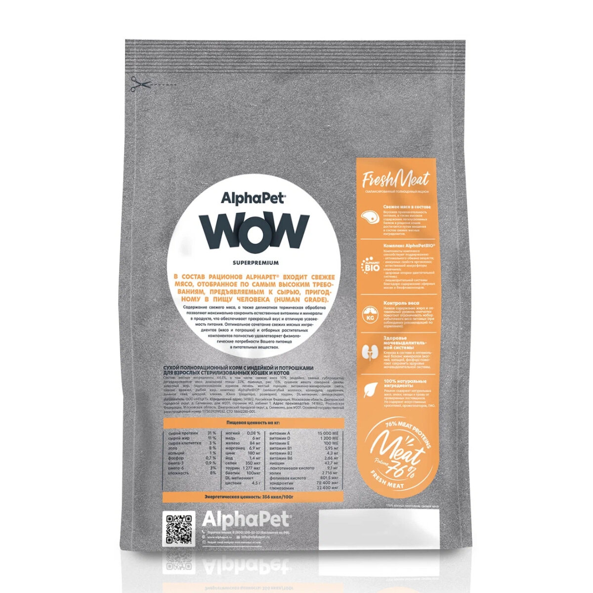 ALPHAPET WOW SUPERPREMIUM 350 гр сухой корм для взрослых стерилизованных кошек и котов с индейкой и , шт (10 шт)