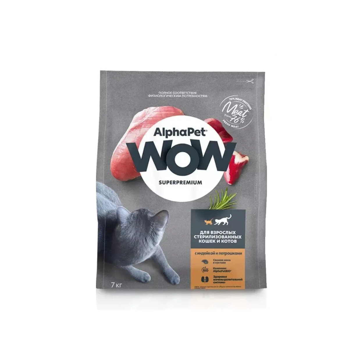 ALPHAPET WOW Superpremium Сухой корм с индейкой и потрошками для взрослых стерилизованных кошек, 7 кг