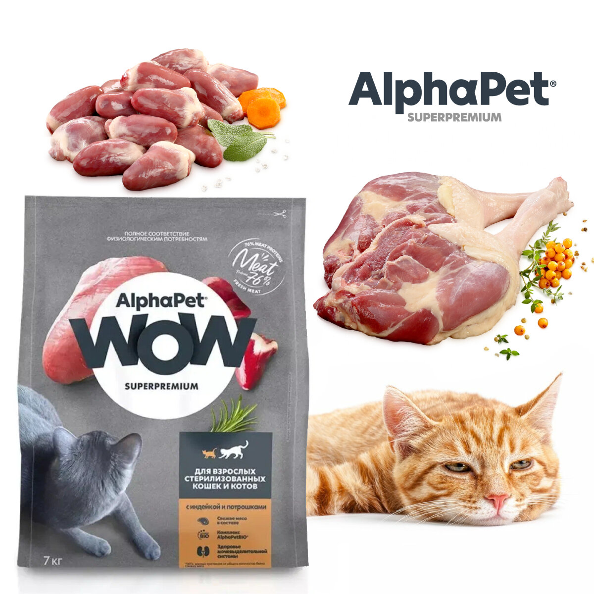 ALPHAPET WOW Superpremium Сухой корм с индейкой и потрошками для взрослых стерилизованных кошек, 7 кг Дефект упаковки без потери веса
