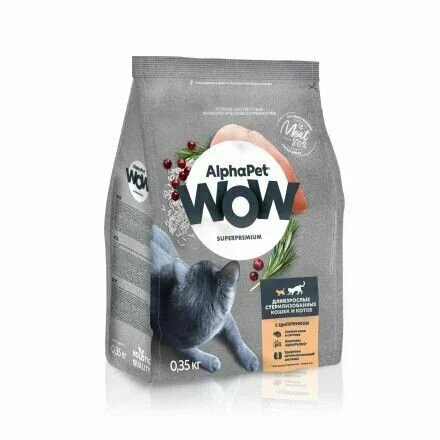 ALPHAPET WOW SUPERPREMIUM 350 гр сухой корм для взрослых стерилизованных кошек и котов с индейкой и , шт (10 шт)