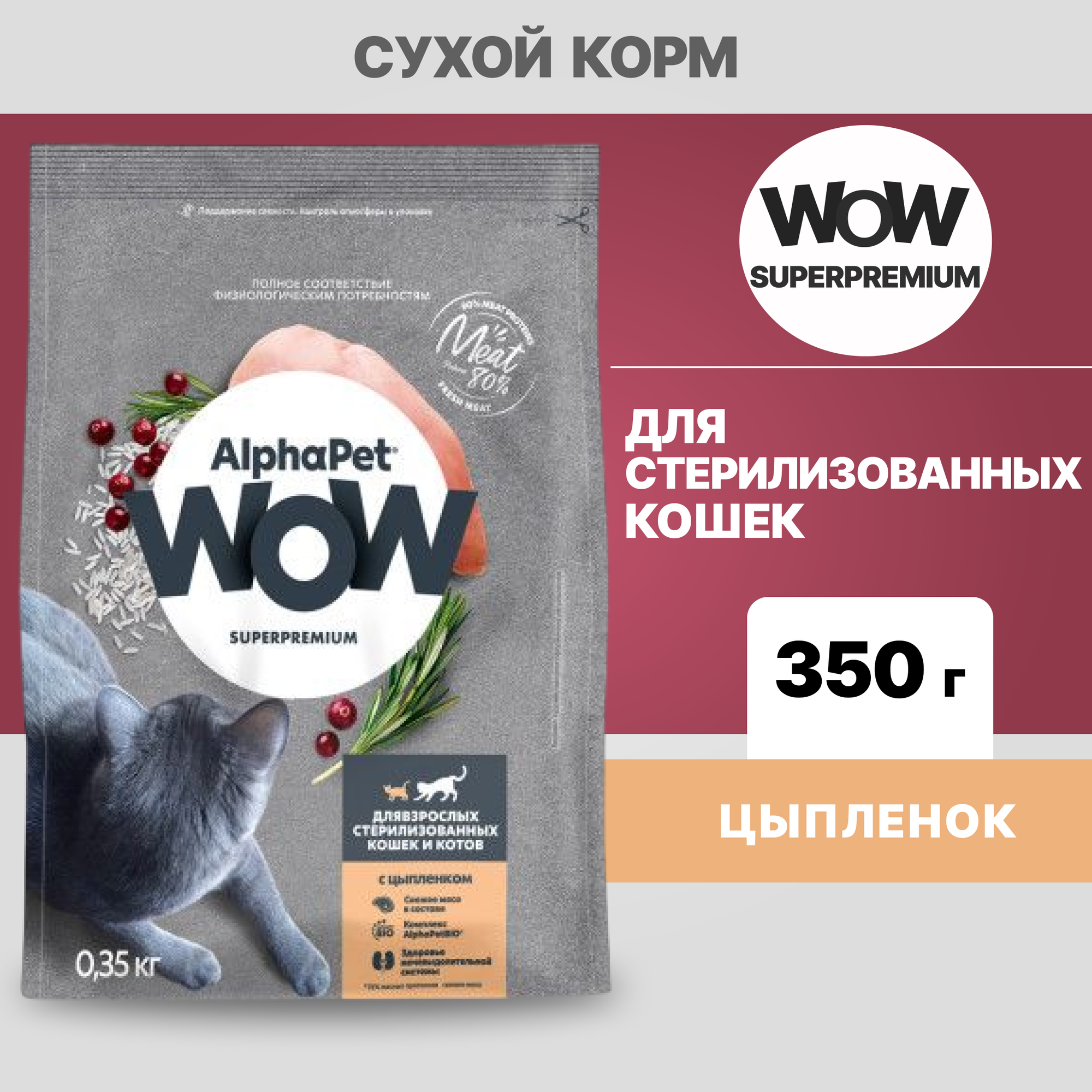 ALPHAPET WOW SUPERPREMIUM сухой корм для взрослых стерилизованных кошек и котов c цыпленком 350 гр