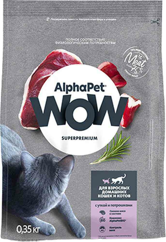 Купить Корм AlphaPet WOW Superpremium для домашних кошек и котов, c уткой и потрошками, 350 г