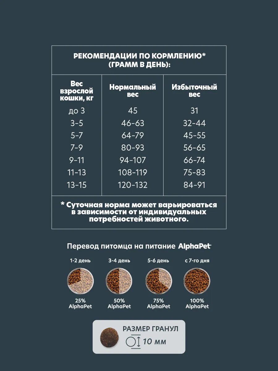| Дозировка | Вес животного, кг/суточная норма, г 1-3/45 3-5/46-63 5-7/64-79 7-9/80-93 9-11/94-107 11-13/108-119 13-15/120-132 |