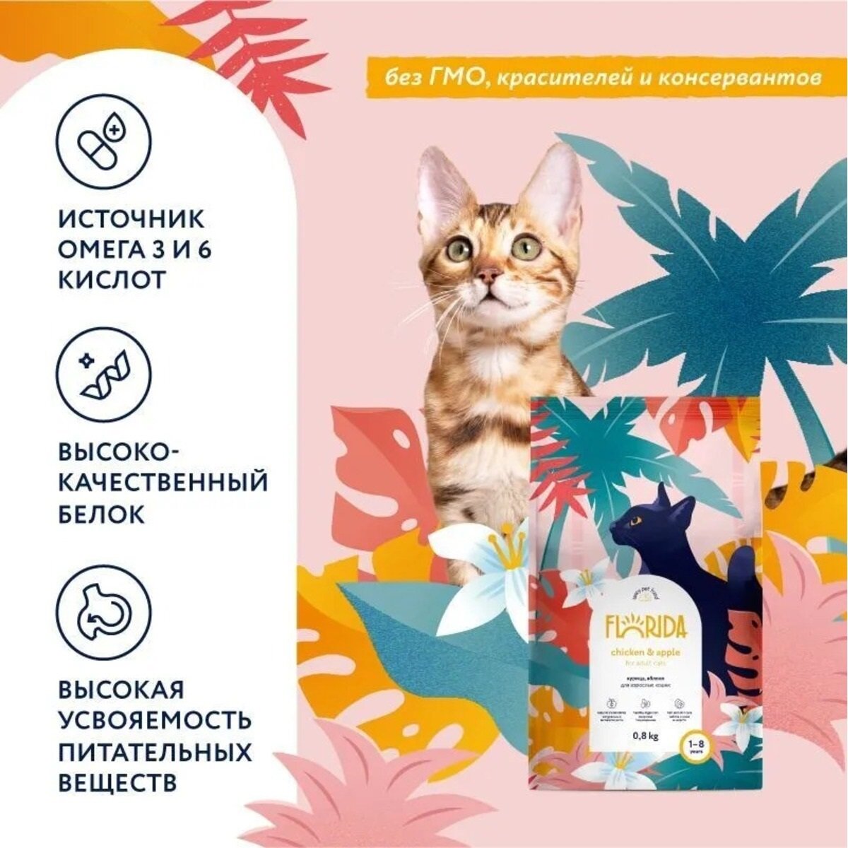 Купить FLORIDA сухой корм для взрослых кошек, с курицей и яблоком, Adult Chicken, 800 гр.