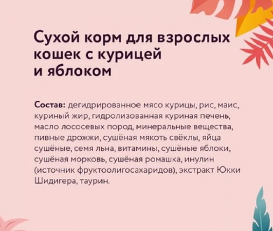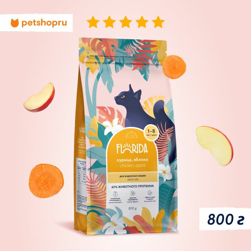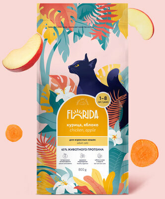 СохранитьFLORIDA сухой корм для взрослых кошек, с курицей и яблоком, Adult Chicken, 800 гр. интересное: