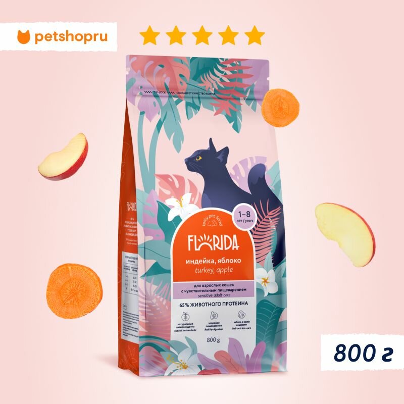 FLORIDA для взрослых кошек с чувствительным пищеварением с индейкой и яблоком (0,8 кг)