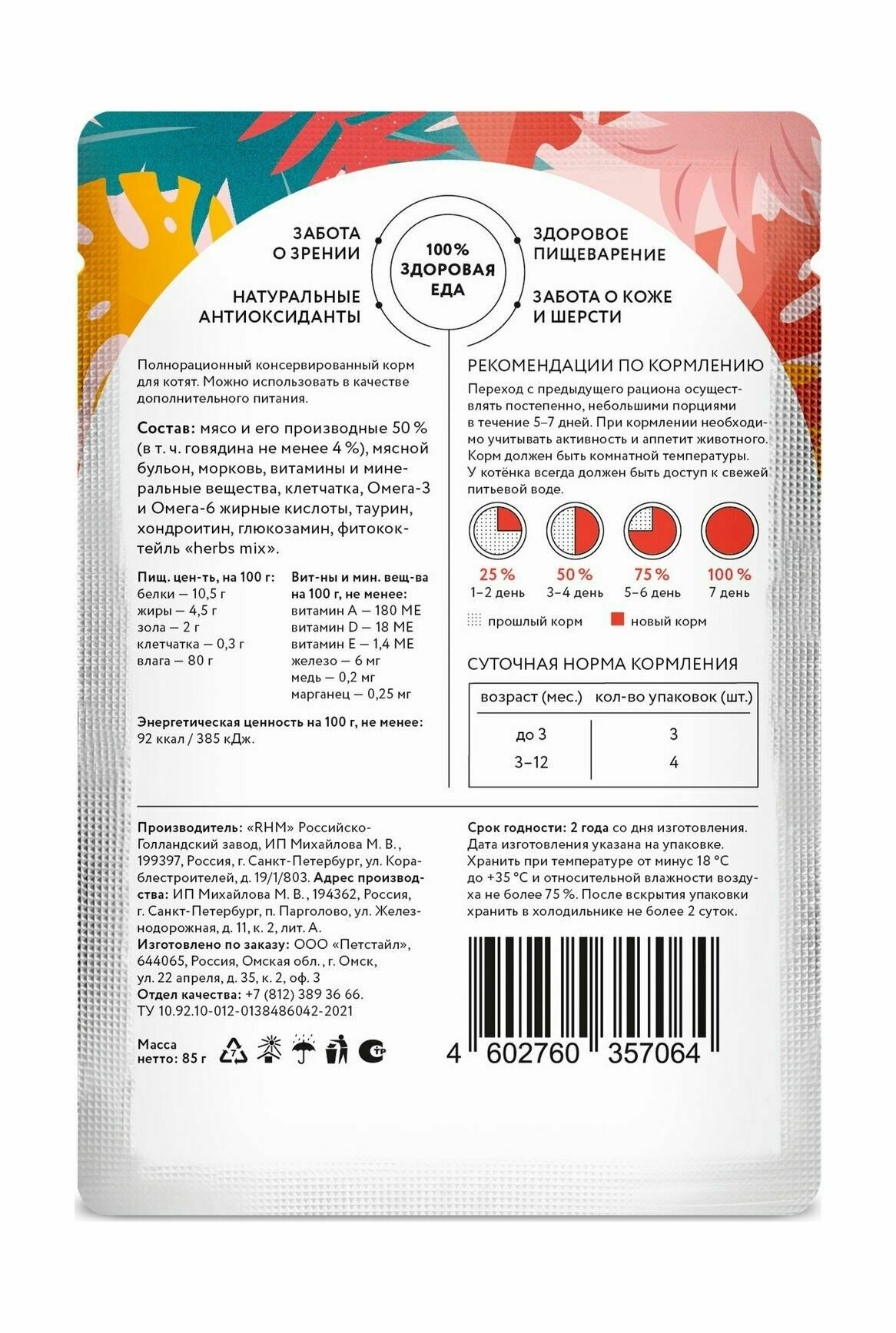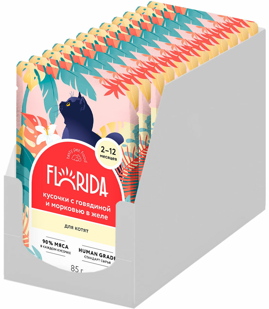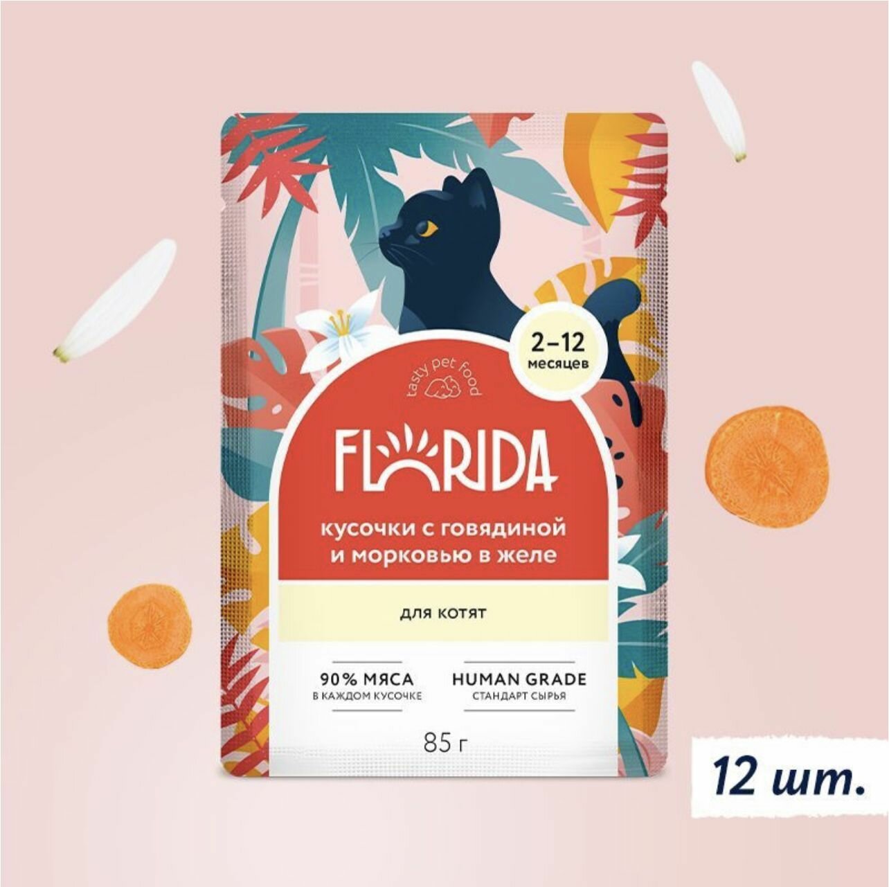 Купить FLORIDA паучи Паучи для котят: кусочки с говядиной и морковью в желе 12 шт по 85 г