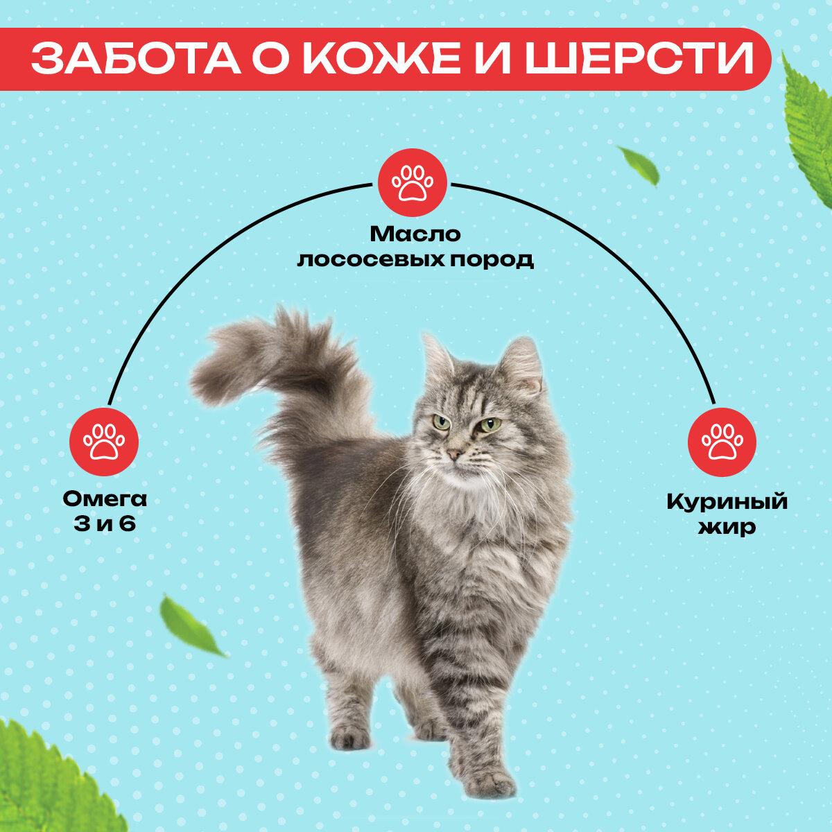 | Особые потребности | гипоаллергенный / для беременных / кормящих кошек / для вывода шерсти / для живущих в помещении / для живущих на улице / для здоровья кожи и блеска шерсти / для здоровья костей и суставов / для профилактики стресса / для снижения запаха стула / для стерилизованных/кастрированных / при чувствительном пищеварении / профилактика МКБ / профилактика зубного камня / профилактика избыточного веса |