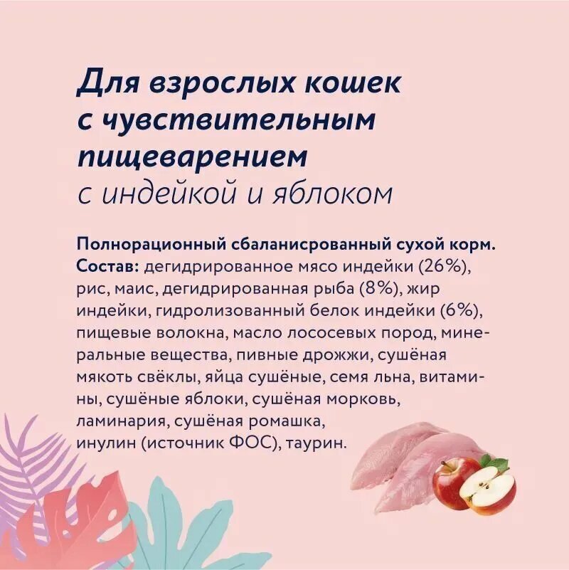 Сохранить53976/41839 Florida сух.д/кошек с чувствительным пищеварением Индейка, яблоко 3+1кг 7% интересное: