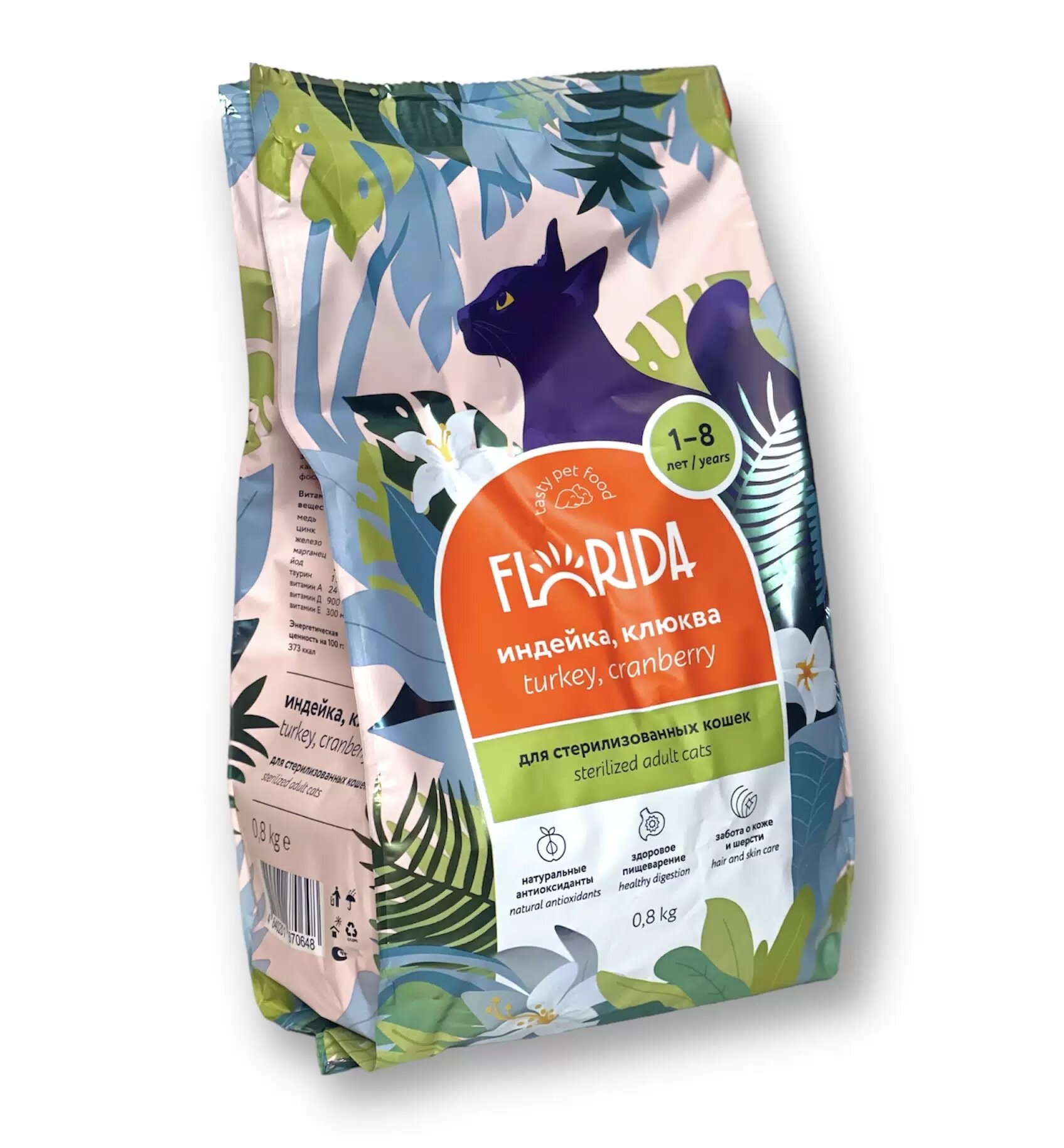 FLORIDA Сухой корм для взрослых стерилизованных кошек с индейкой и клюквой, 0,8кг
