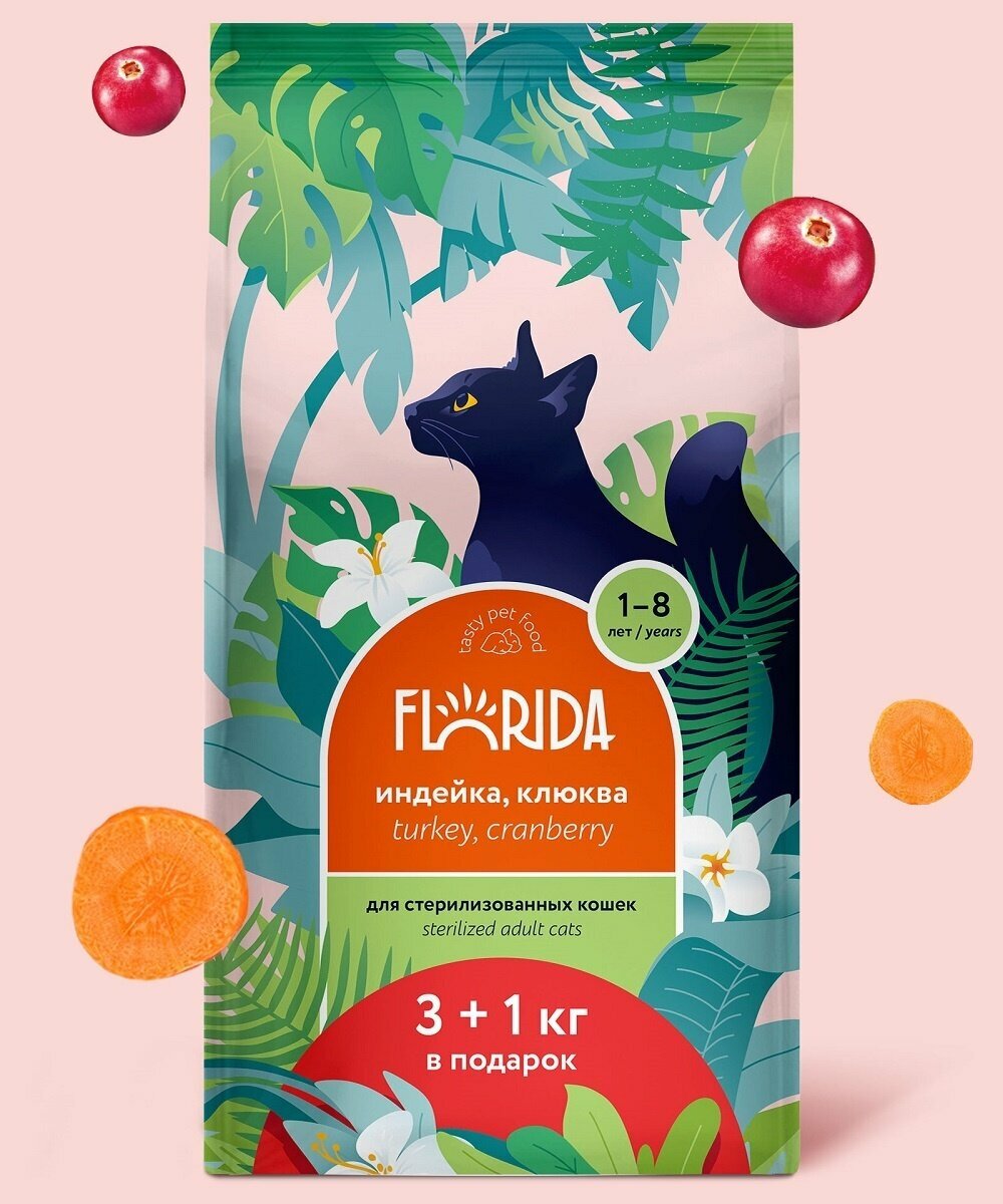 СохранитьFlorida сухой корм для взрослых стерилизованных кошек и кастрированных котов с индейкой и клюквой - 3+1 кг в подарок интересное: