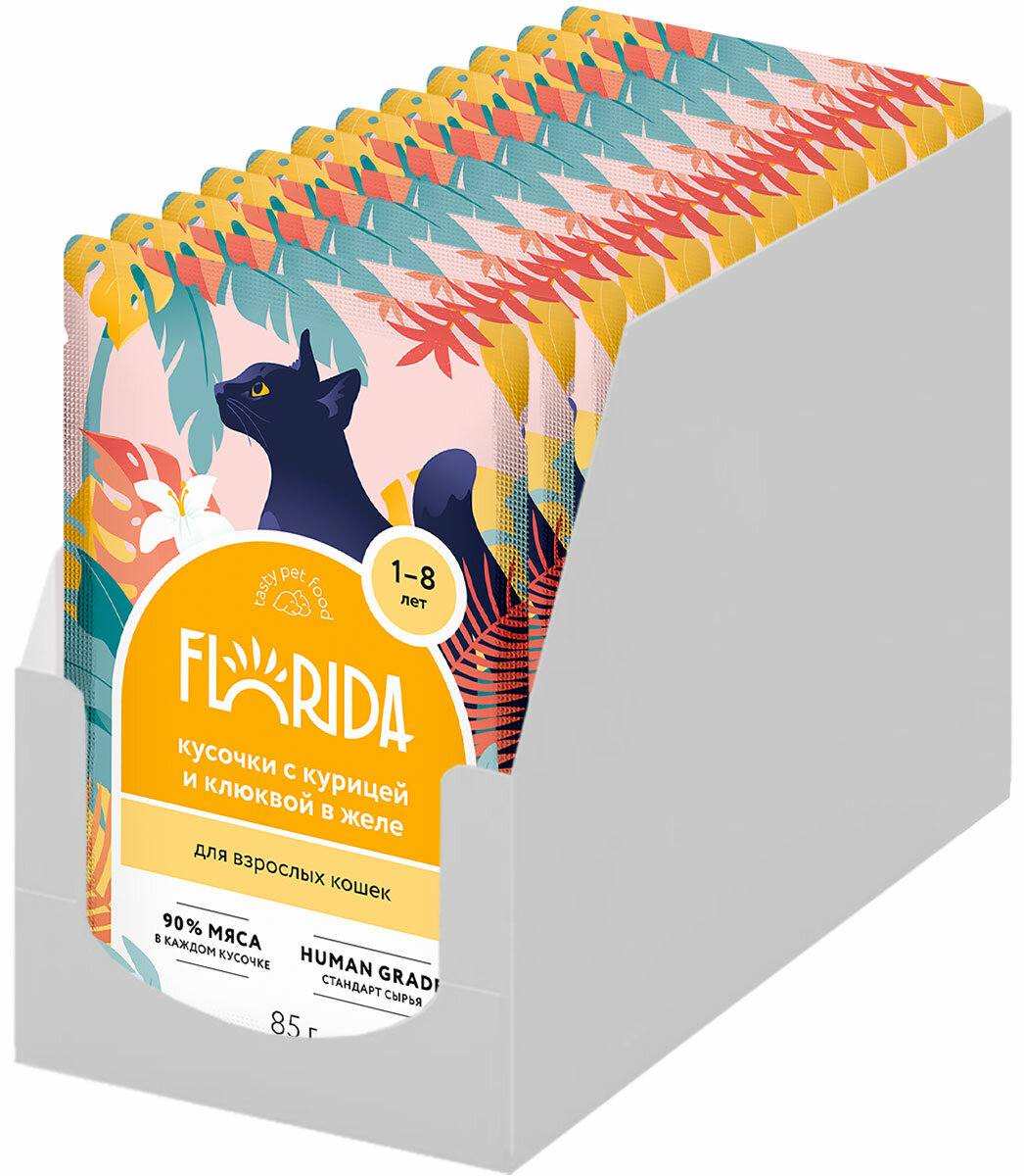 FLORIDA для взрослых кошек с курицей и клюквой в желе (85 гр х 12 шт)