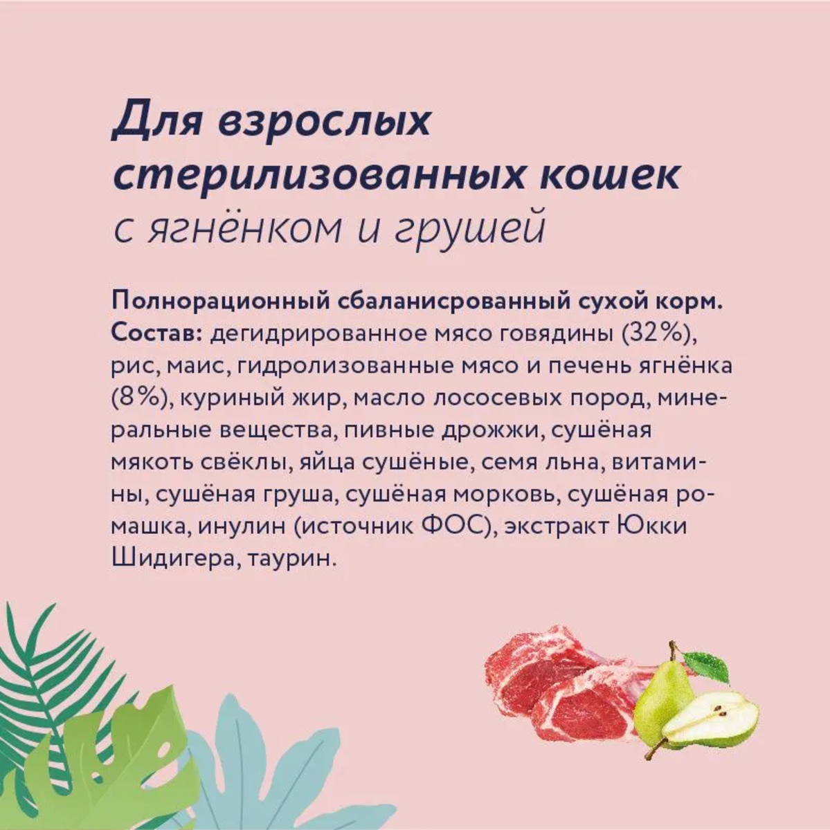 FLORIDA Сухой корм для стерилизованных кошек с ягненком и грушей Sterilised 34 Lamb 0,800 кг 61425 (1 шт)