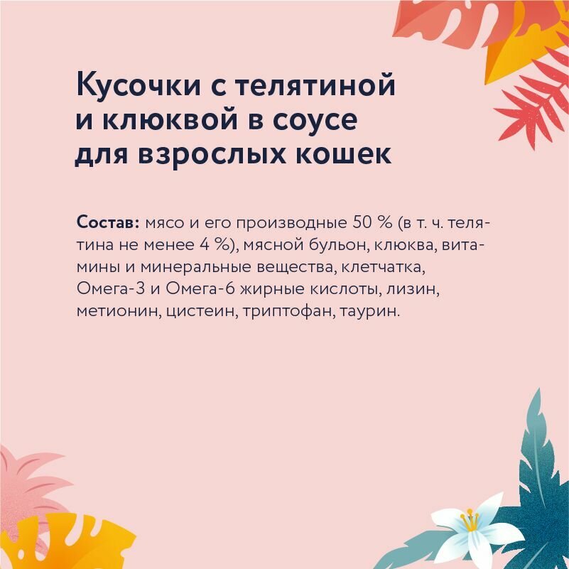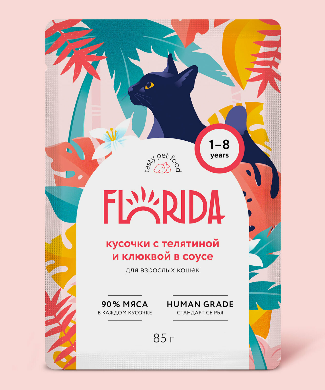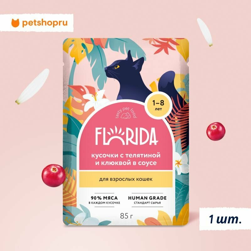Купить FLORIDA Пауч для взрослых кошек кусочки с Телятиной и Клюквой в соусе