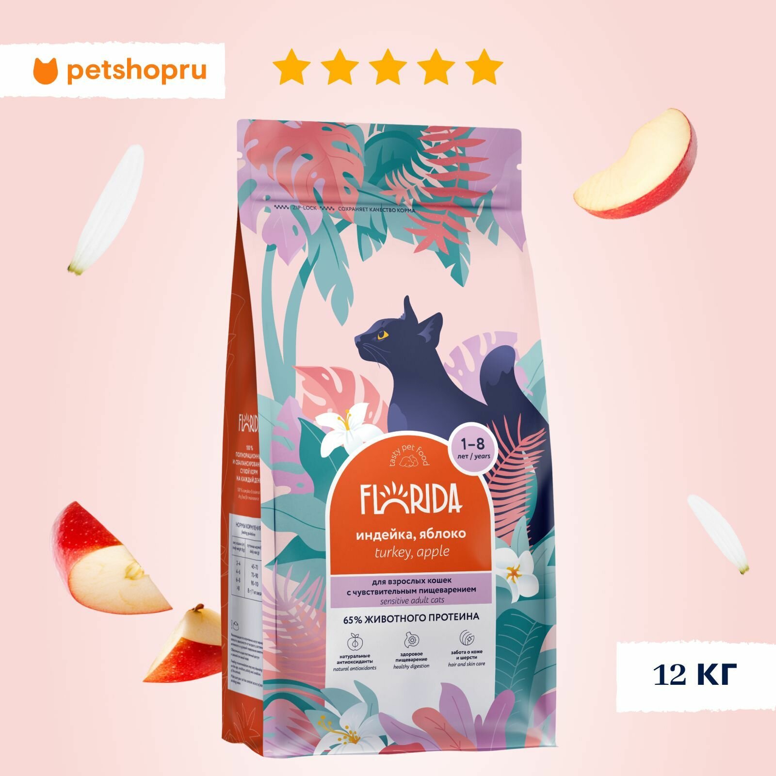 СохранитьFlorida сухой корм для взрослых кошек с чувствительным пищеварением с индейкой и яблоком - 12 кг интересное: