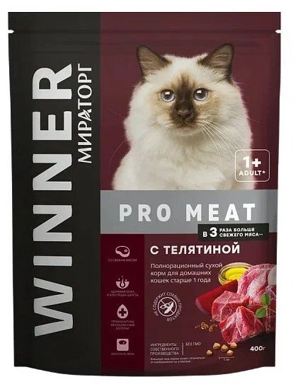 Купить Корм сухой Winner PRO MEAT c телятиной для домашних кошек старше года, 400г