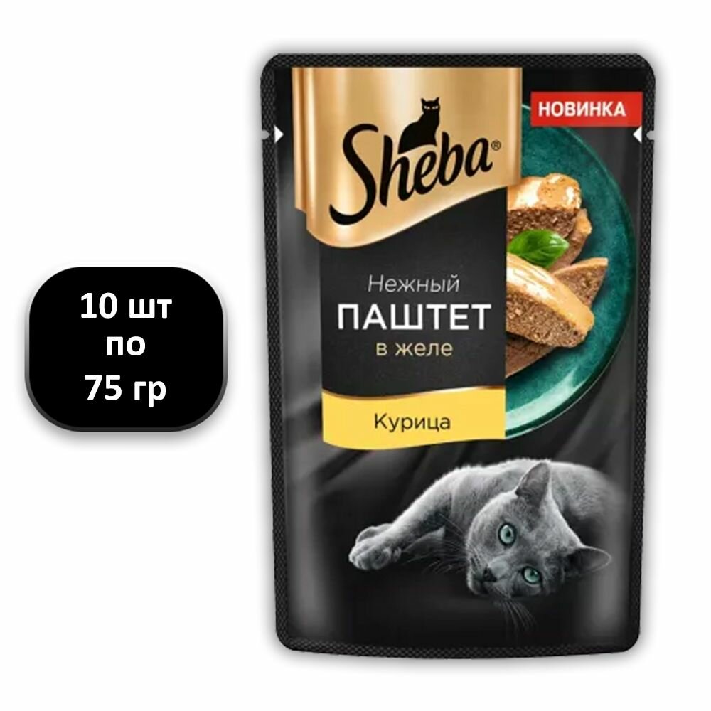 Купить 10 ШТ, Sheba, Корм влажный, для кошек, паштет с курицей. 10 шт по 75 гр