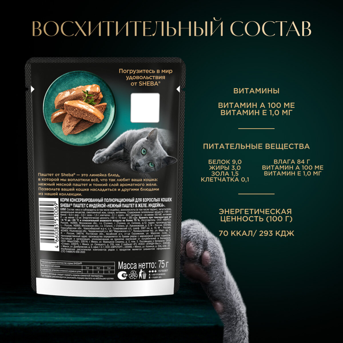 Купить SHEBA для взрослых кошек паштет с индейкой пауч 75 гр х 5 шт