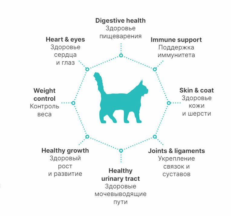 | Особые потребности | беззерновой / гипоаллергенный / для вывода шерсти / для живущих в помещении / для живущих на улице / для здоровья кожи и блеска шерсти / для здоровья костей и суставов / для стерилизованных/кастрированных / при чувствительном пищеварении / профилактика МКБ / профилактика избыточного веса |