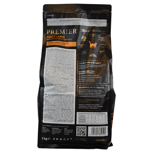 Сухой корм для кошек крупных пород Premier Cat Lamb & Turkey Adult Large ягненок и индейка, 2кг