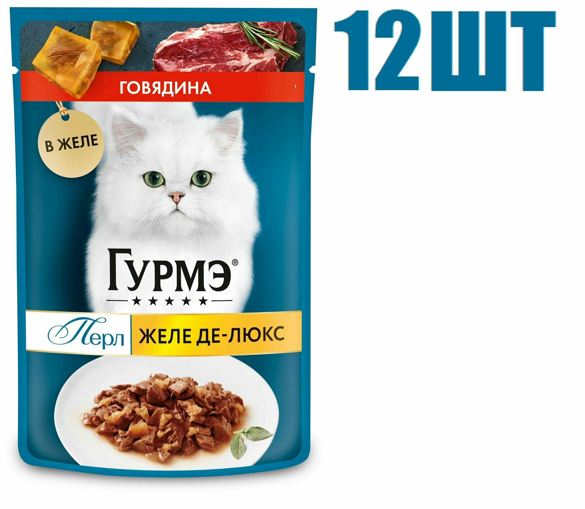 Гурмэ Перл Желе Де-Люкс 75 г влажный корм для кошек, с говядиной в роскошном желе х26 штук