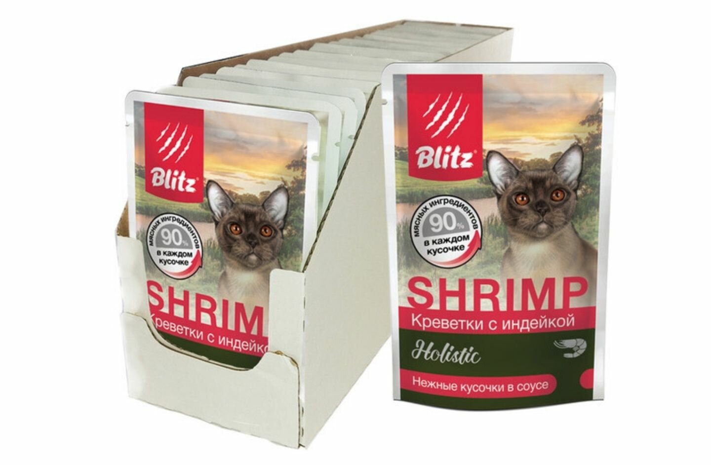 BLITZ HOLISTIC SHRIMP для взрослых кошек с креветками и индейкой в соусе пауч 85 гр 85 гр х 5 шт