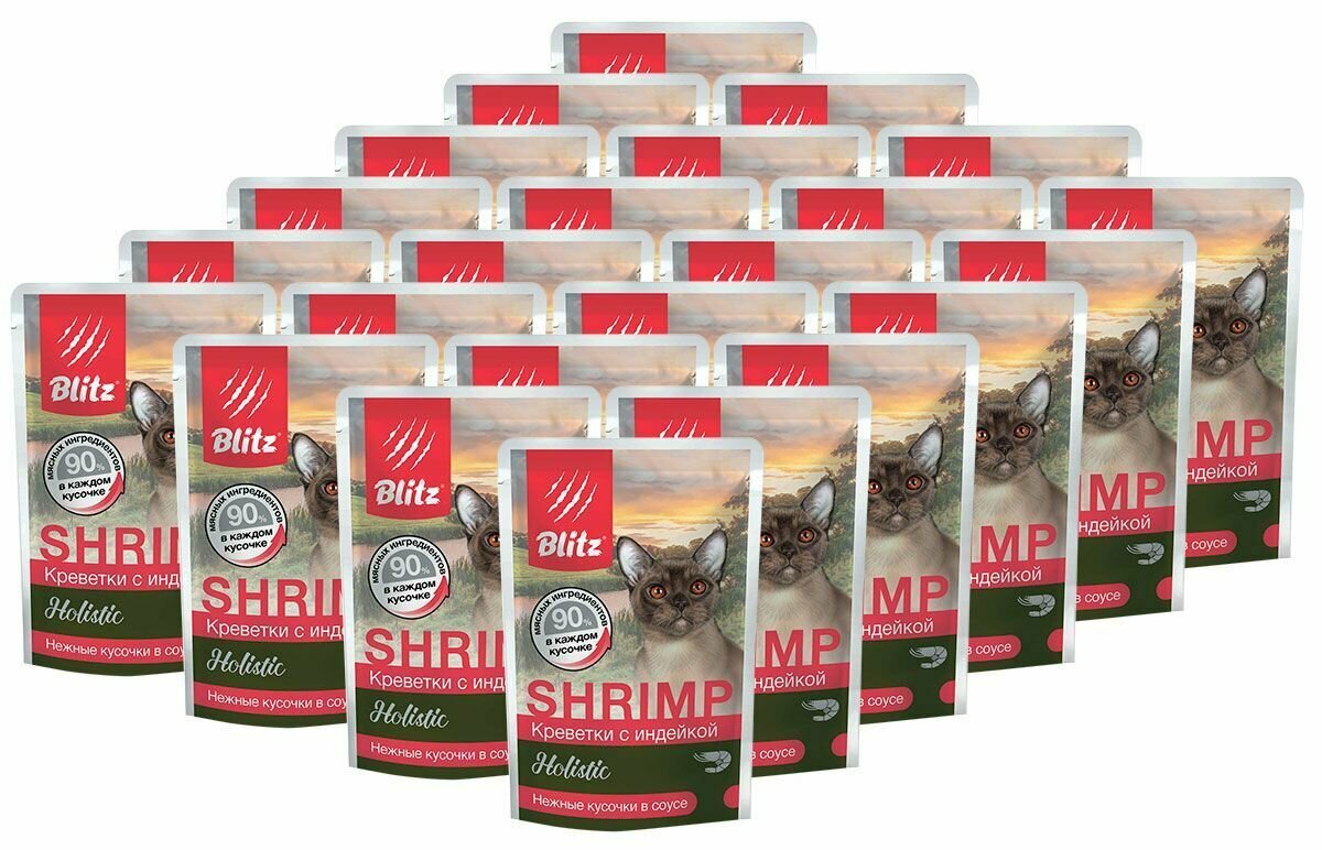 Корм влажный Blitz Holistic Adult Cat для кошек всех пород (креветки с индейкой) полнорационный, 24 шт