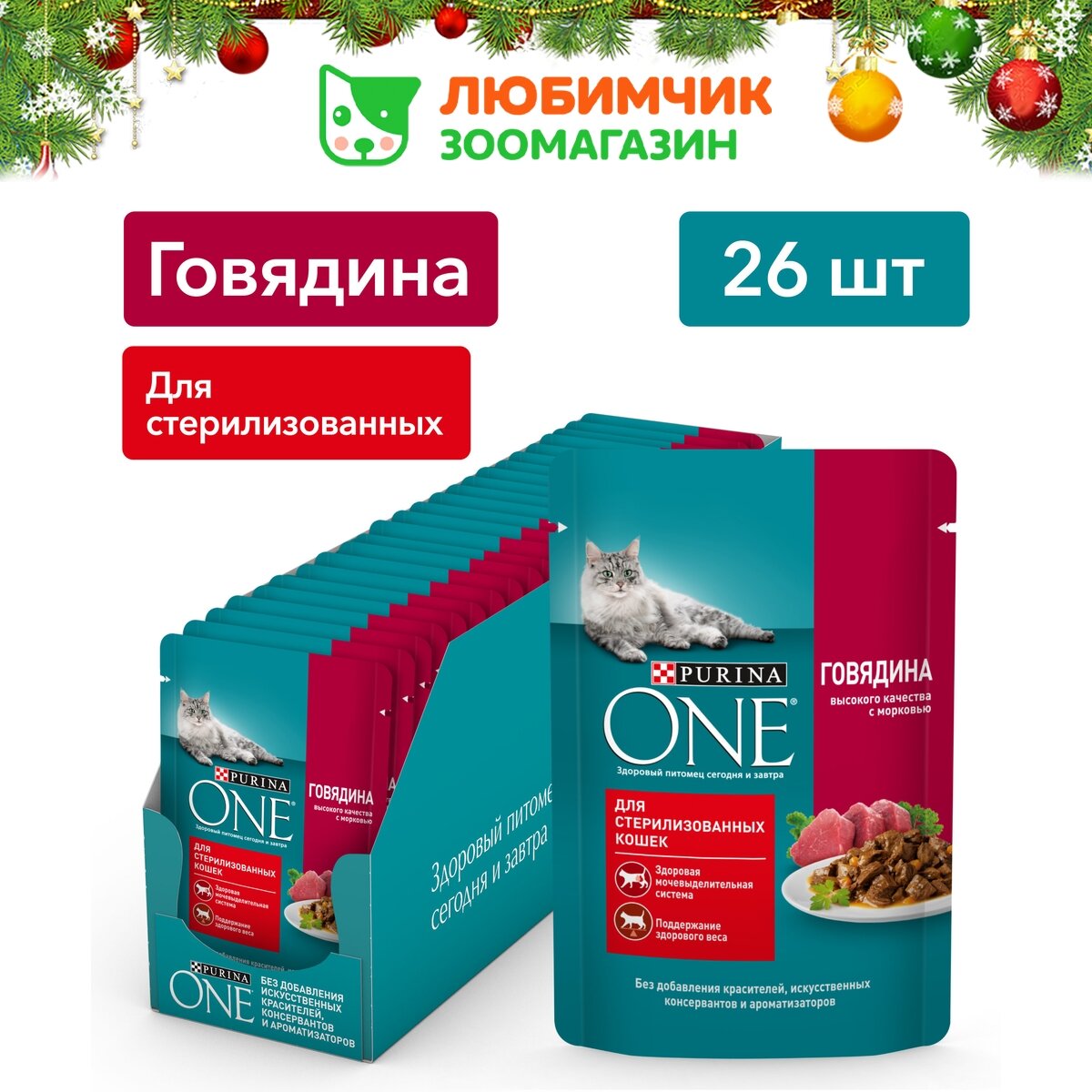 Влажный корм для стерилизованных кошек Purina One Sterilised с говядиной и морковью в соусе 26шт.*75 г