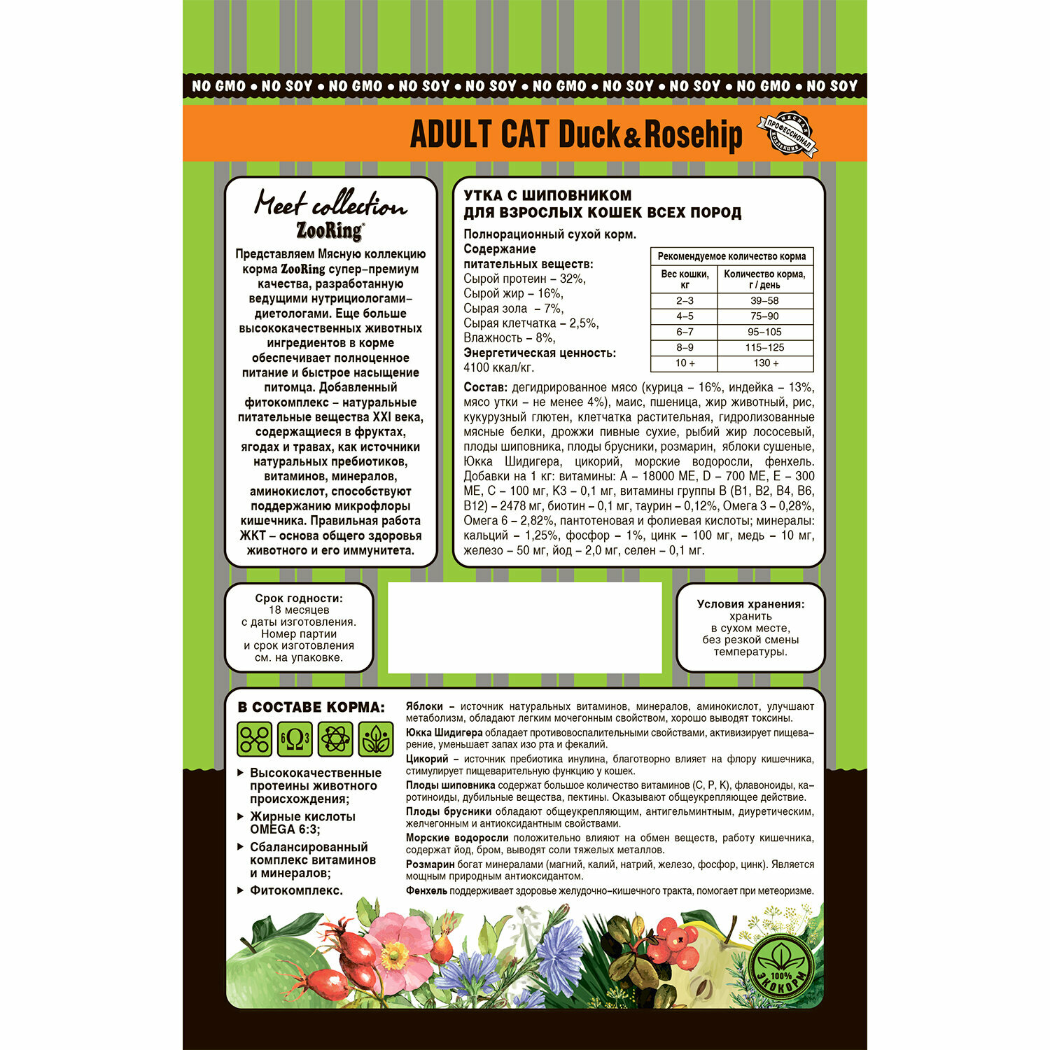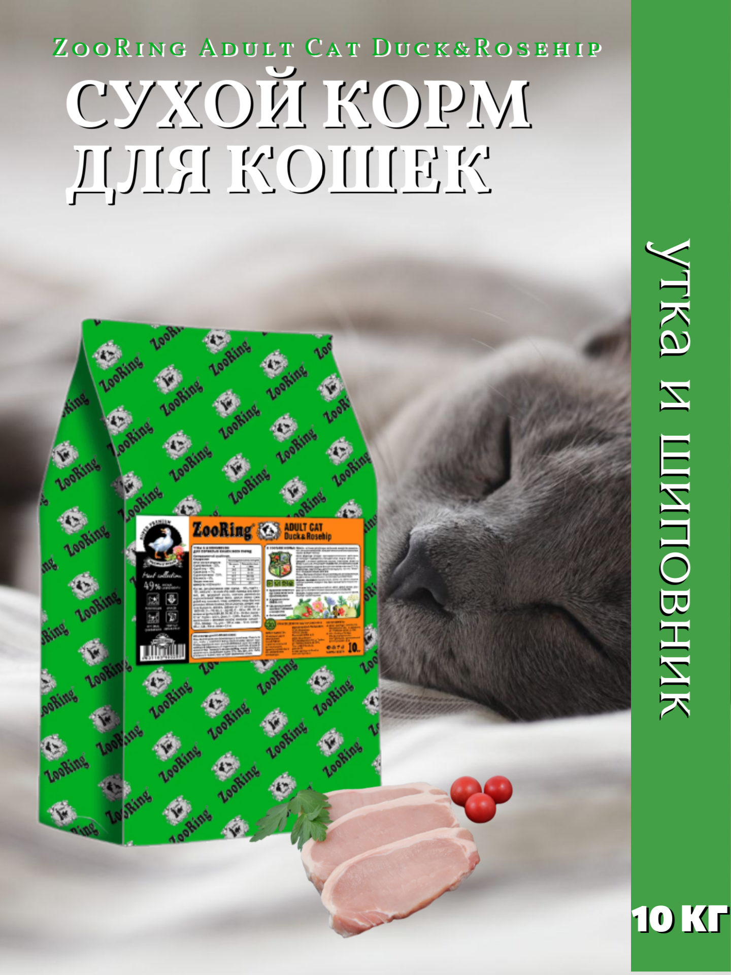Сухой корм Зооринг / ZooRing Adult Cat Duck&Rosehip для взрослых кошек, утка с шиповником, 10 кг