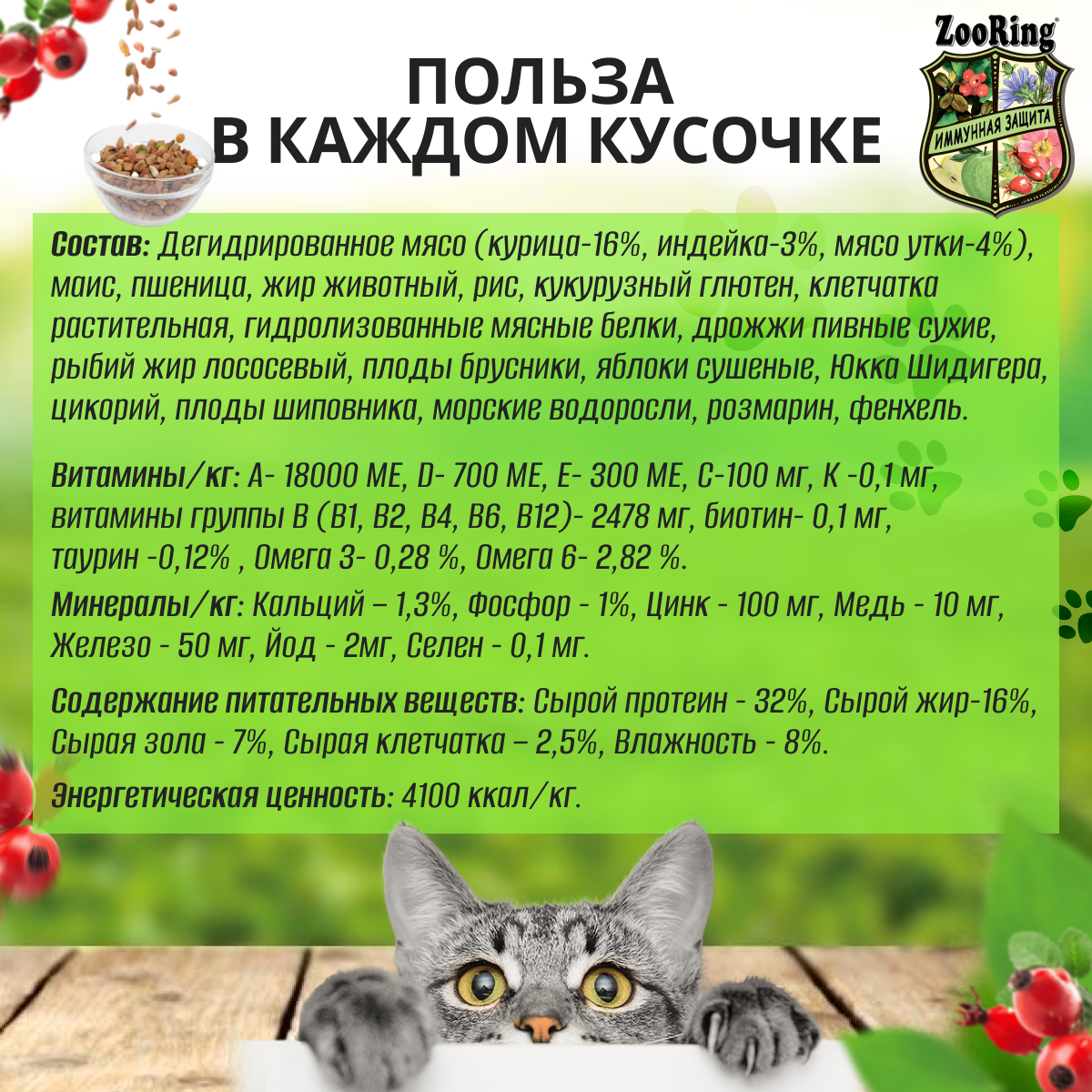 Сухой корм Зооринг / ZooRing Sterilized Cat Max Turkey & Duck & Lingonberry. для стерилизованных кошек, индейка и утка с брусникой, 1,5 кг