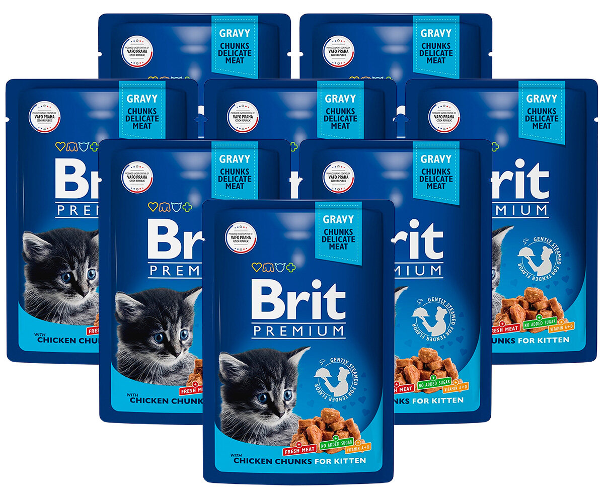 Купить BRIT PREMIUM CAT CHICKEN CHUNKS FOR KITTEN для котят с курицей пауч 85 гр 85 гр х 8 шт