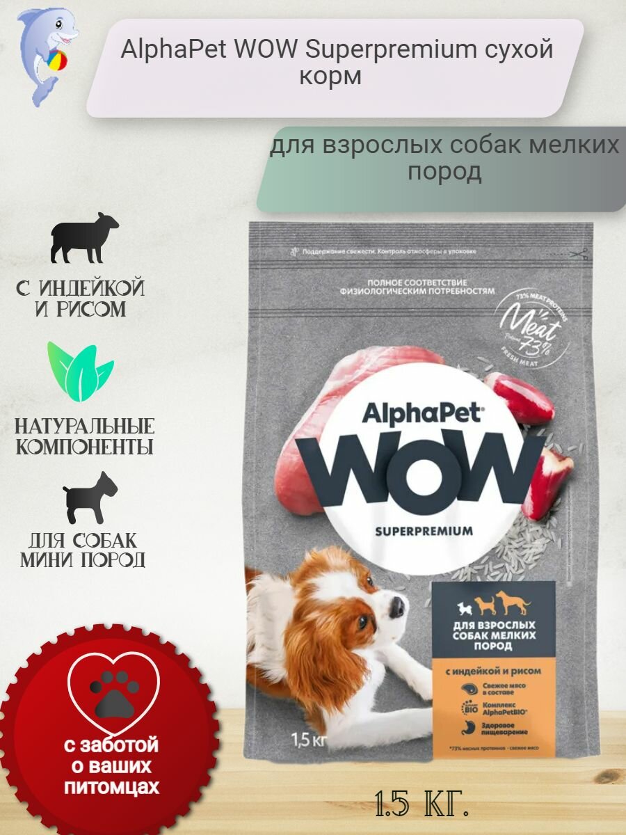 Сухой корм AlphaPet WOW Superpremium для собак мелких пород, с индейкой и рисом, 1,5 кг