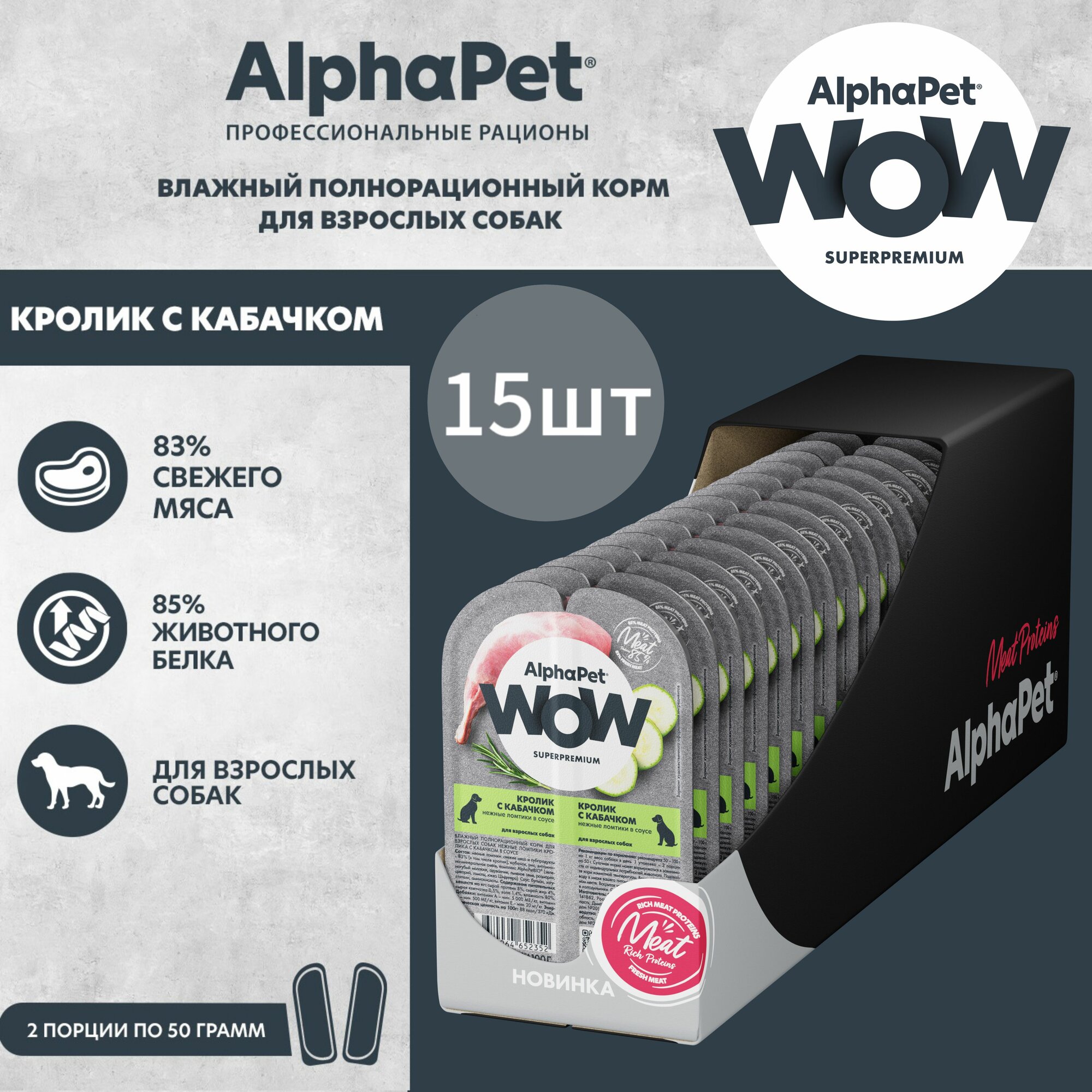 Купить Влажный корм для собак AlphaPet WOW кролик с кабачком в соусе,упаковка 15 шт х 100 гр