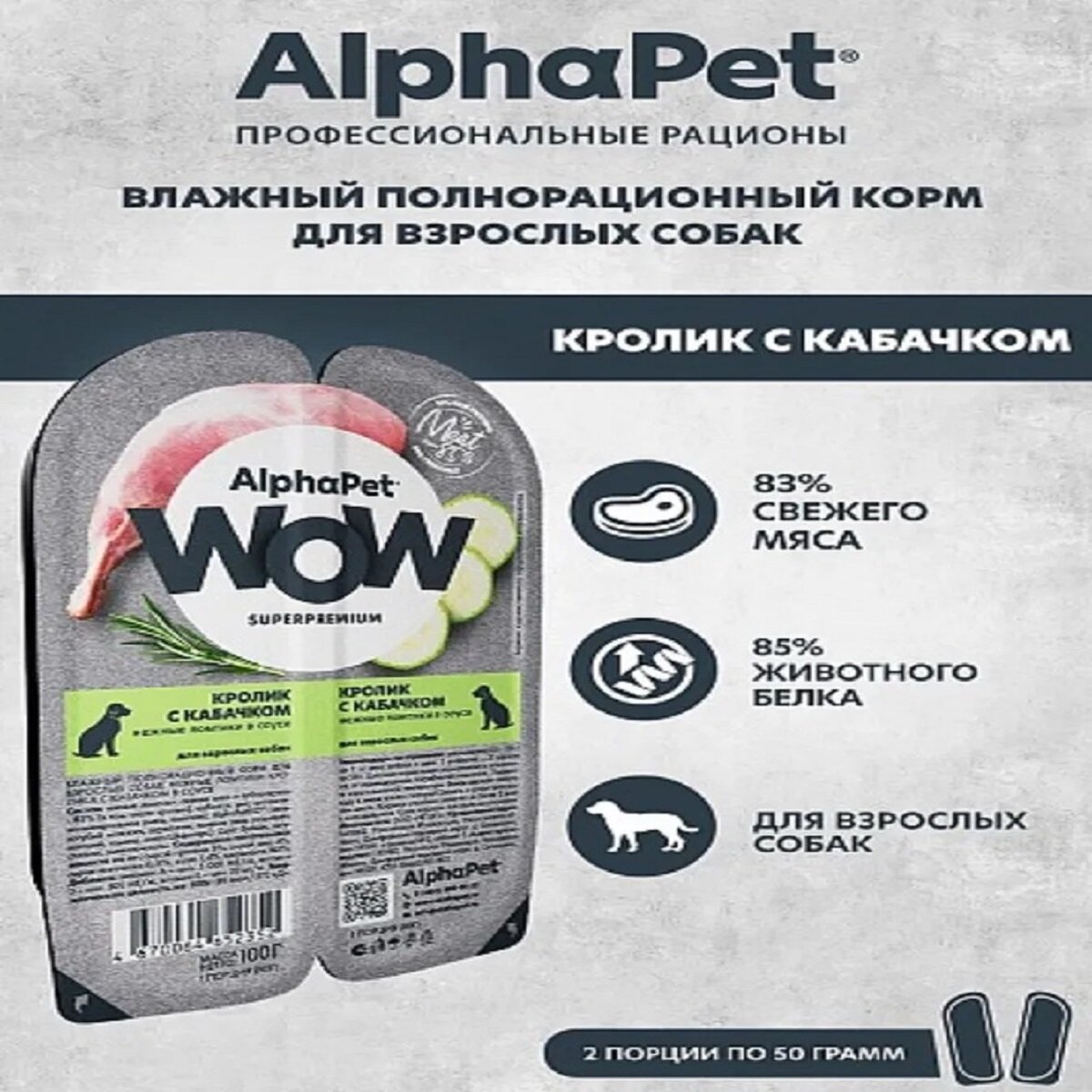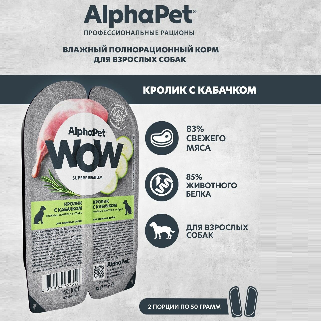 ALPHAPET WOW SUPERPREMIUM 100 гр ламистер влажный корм для взрослых собак кролик с кабачком 30 шт