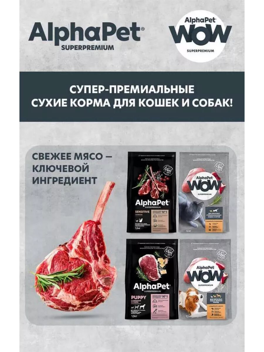AlphaPet WOW Superpremium сухой полнорационный корм для взрослых собак мелких пород с чувствительным пищеварением с ягненком и бурым рисом - 900 г