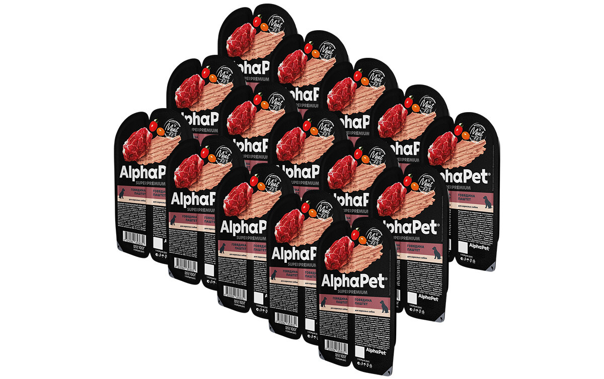 Купить Влажный корм для собак AlphaPet Superpremium паштет с говядиной,упаковка 15 шт по 100 гр