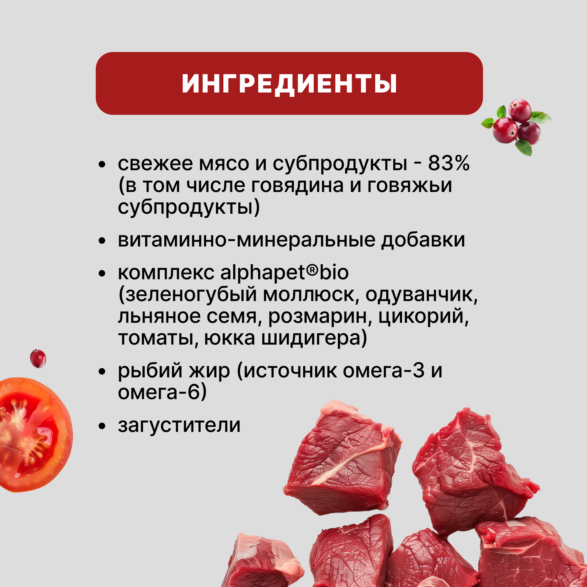 | Дополнительная информация | свежее мясо в составе |