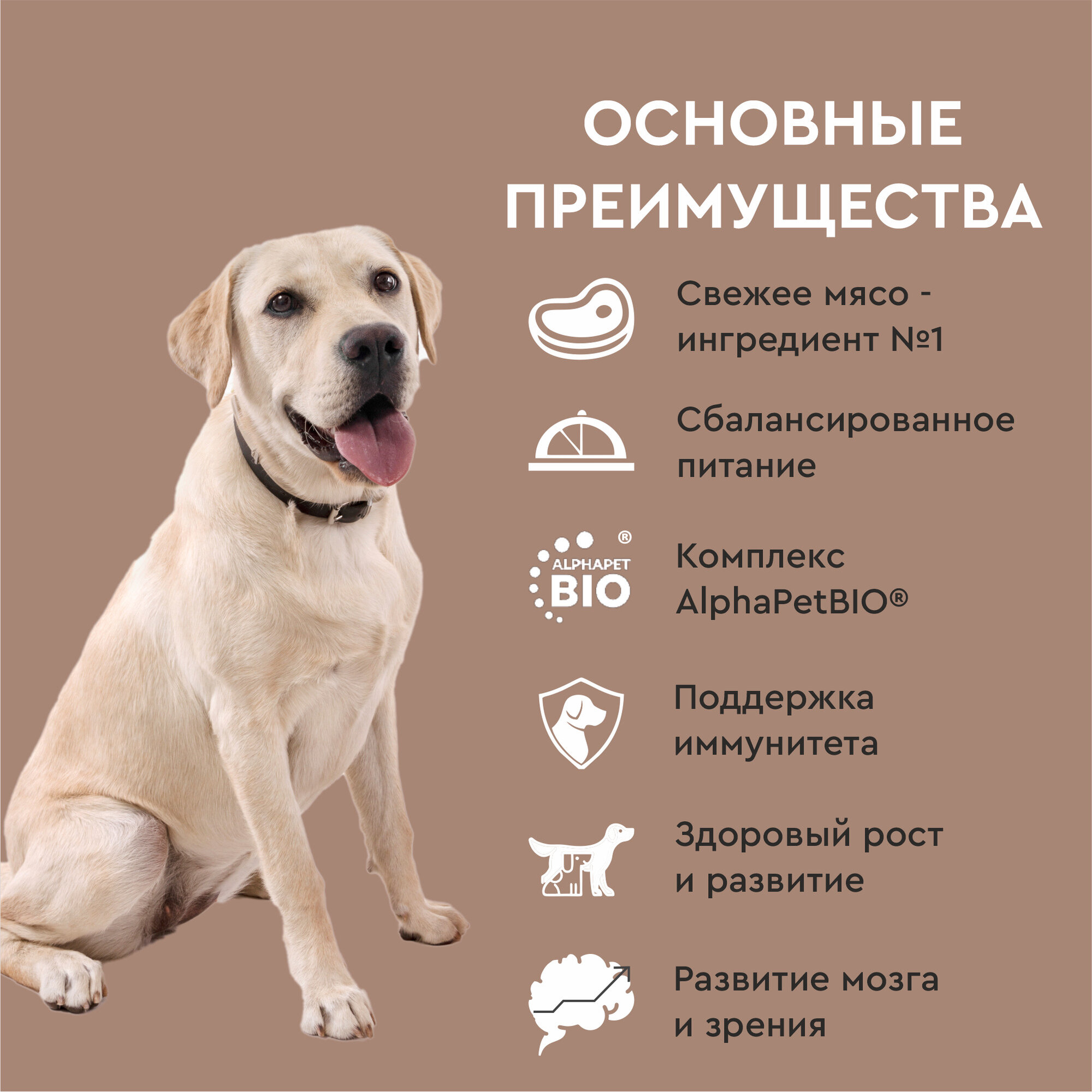 ALPHAPET SUPERPREMIUM 18 кг сухой корм для щенков до 6 месяцев, беременных и кормящих собак крупных пород с говядиной и рубцом