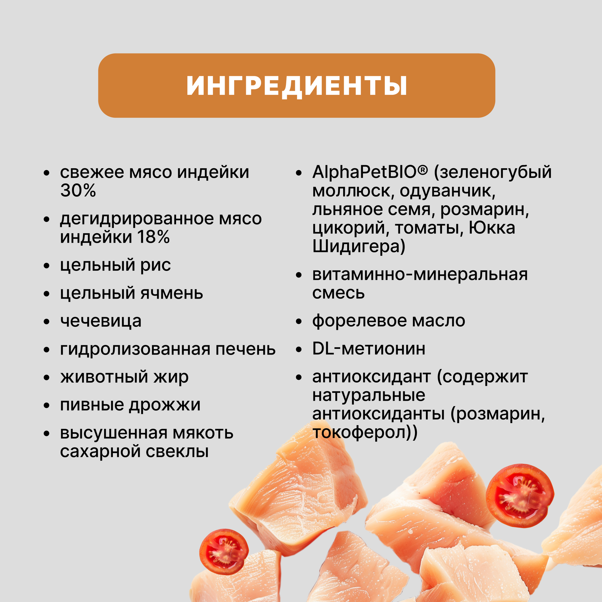 AlphaPet Superpremium Сухой корм монобелковый для взрослых собак средних и крупных пород, Индейка 12кг