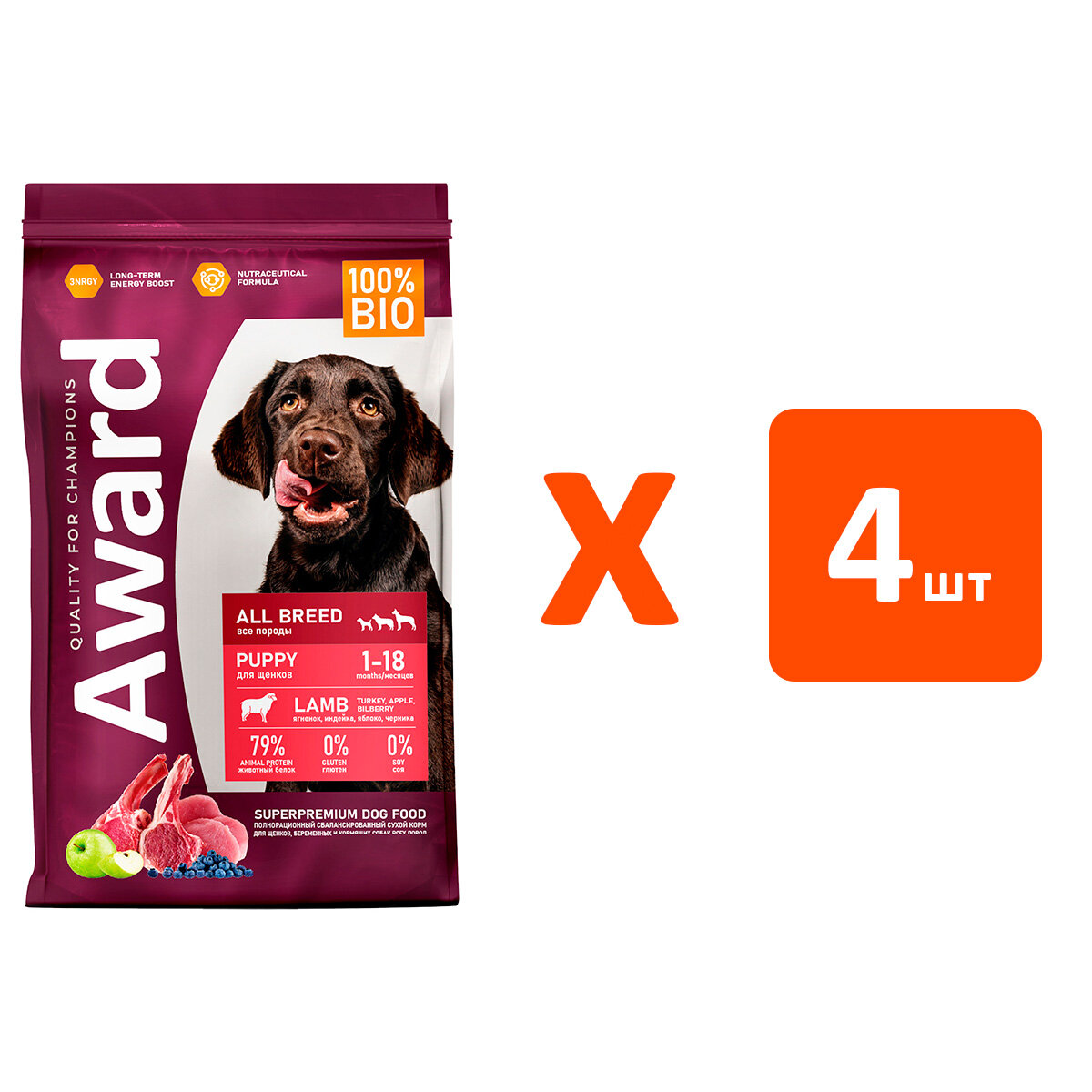 Купить AWARD ALL BREED PUPPY для щенков, беременных и кормящих сук всех пород с ягненком и индейкой 2 кг х 4 шт