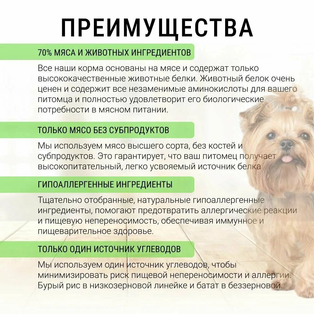 | Возраст животного | взрослые (1-6 лет) / пожилые (7+) / щенки (до 1 года) |