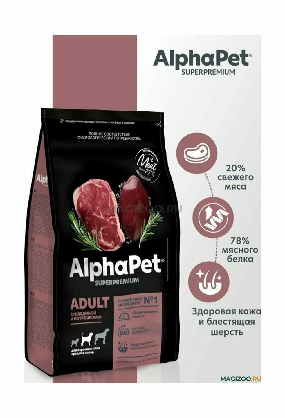 Купить AlphaPet Superpremium сухой корм для собак средних пород Говядина и потрошки 12кг