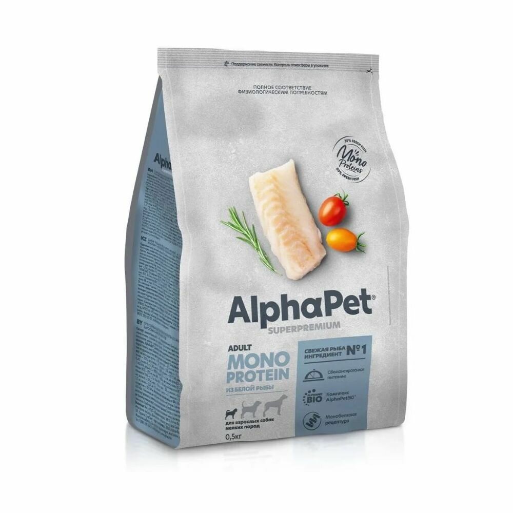 AlphaPet Superpremium MONOPROTEIN / Сухой полнорационный корм из белой рыбы для взрослых собак мелких пород, 500 грамм