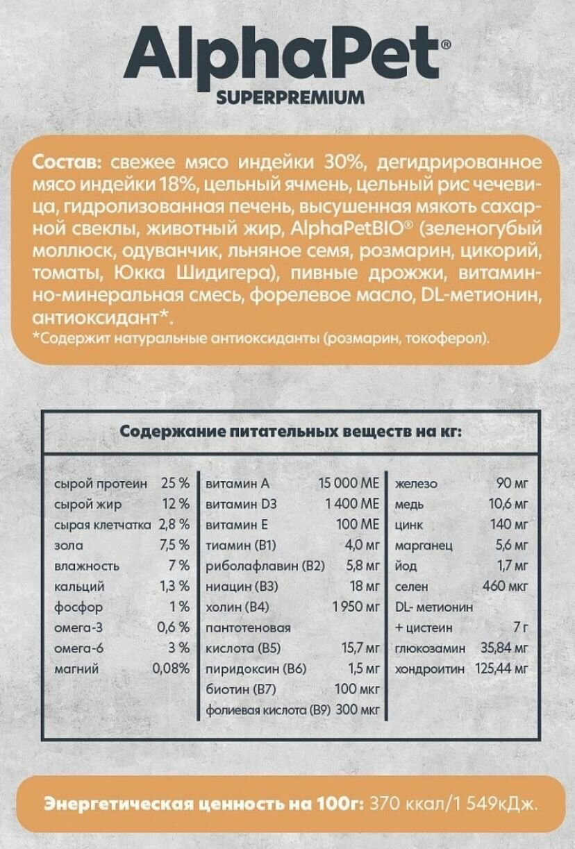 Купить Сухой корм AlphaPet Superpremium Monoprotein АльфаПет для собак Средних и Крупных пород Индейка, 12 кг