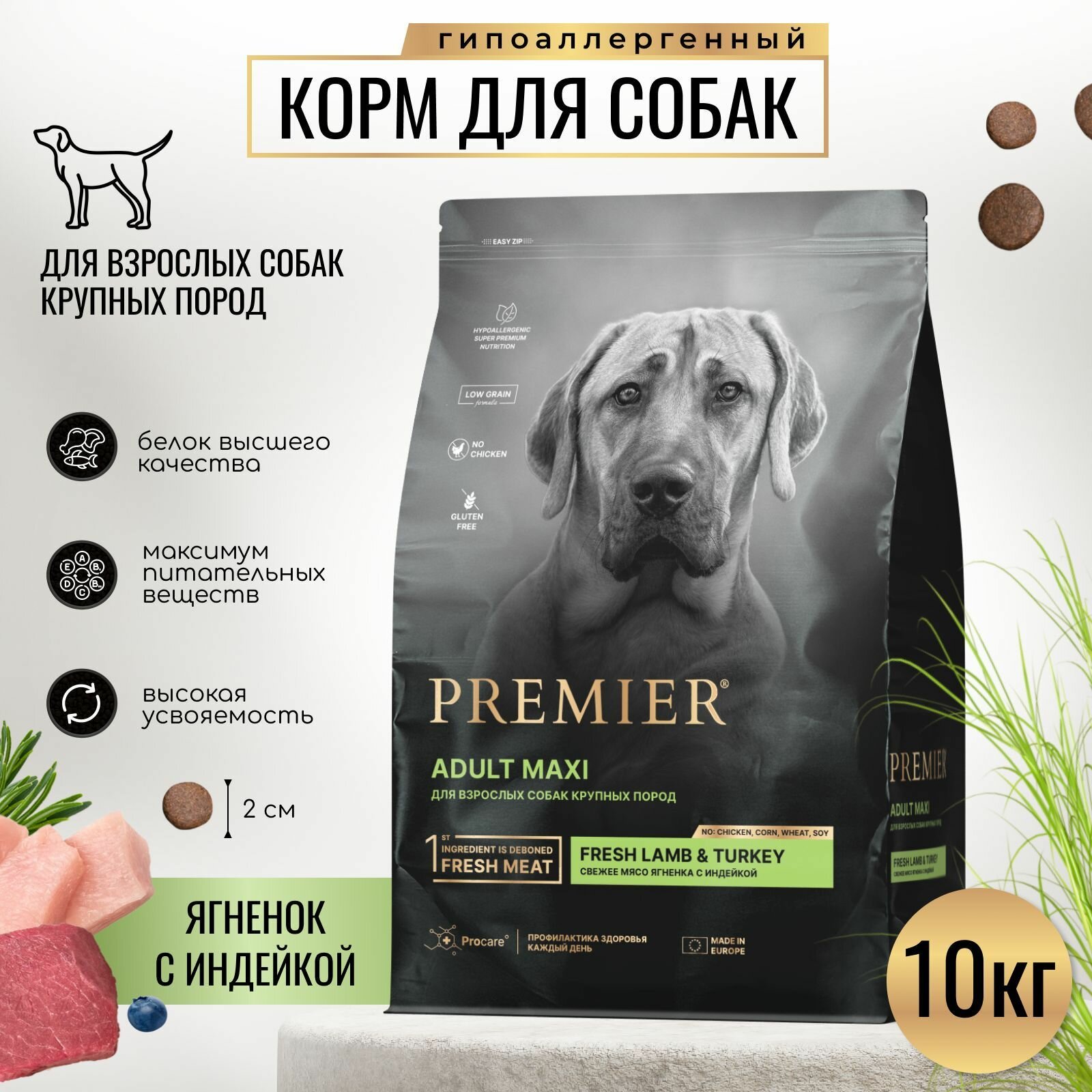 Premier Dog Lamb&Turkey ADULT Maxi 10 кг сухой корм для собак крупных пород свежее мясо ягненка с индейкой