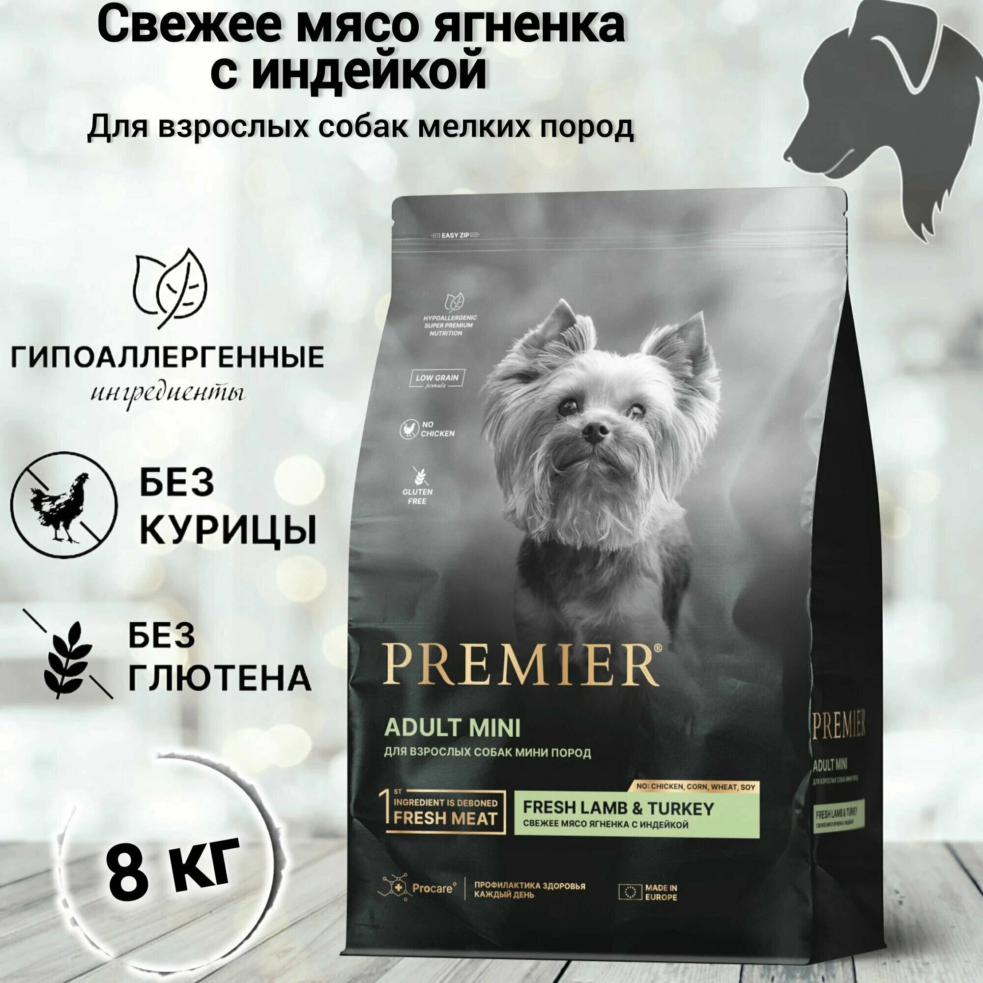 Premier Dog Lamb&Turkey ADULT Mini корм для собак мелких пород свежее мясо ягненка с индейкой 1кг